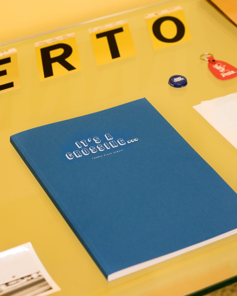 Le livre « It’s a Crossing… » par Thomas Block Humery a été exposé pour la première fois à la Galerie Prima à Paris en juin 2025. À cette occasion, l’artiste a réalisé une installation d’objets faisant partie du quotidien américain et collectés durant ses différents voyages, un clin d’oeil amusé à l’exposition « The New Realists » à la Sidney Janis Gallery qui a lancé le « Pop Art » un soir de 1962 à New York.