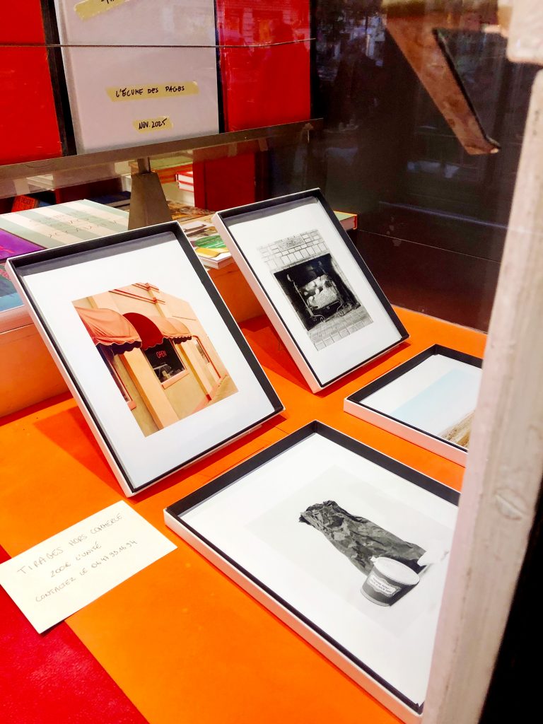En vitrine à la très belle librairie L’écume de pages entre la brasserie Lipp et le Café de Flore à Paris avec des livres et des tirages limités. Jusqu’à la mi-novembre 2025.